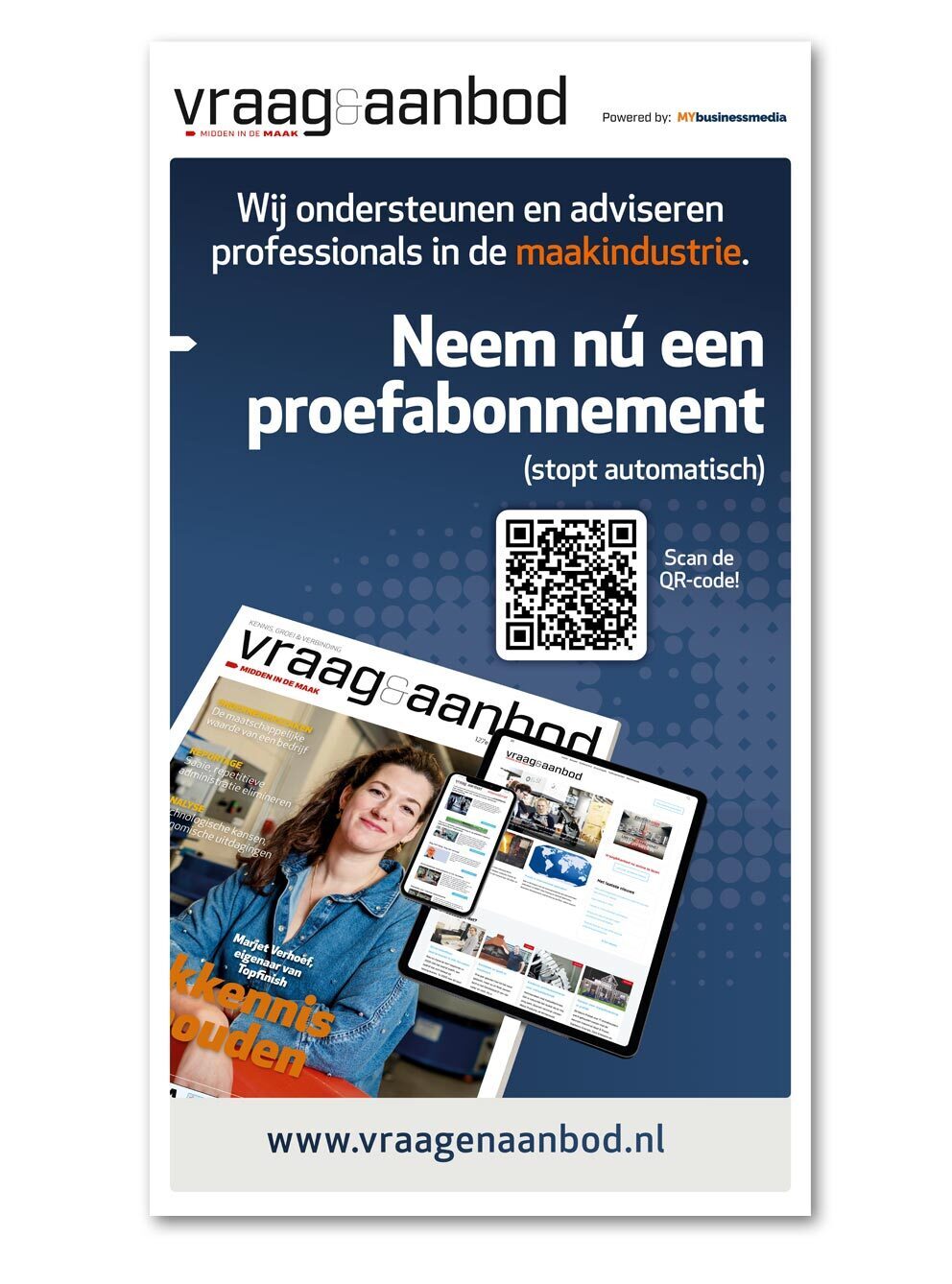 Brochure met mediadata voor het jaar 2018. Vraag&Aanbod is een onafhankelijke handelskrant voor ondernemers in het industriƫle midden- en kleinbedrijf.